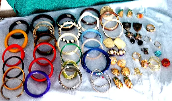 Es ist ein Posten mit diversen Armreifen Ohrenklippser, Fingerringen usw.