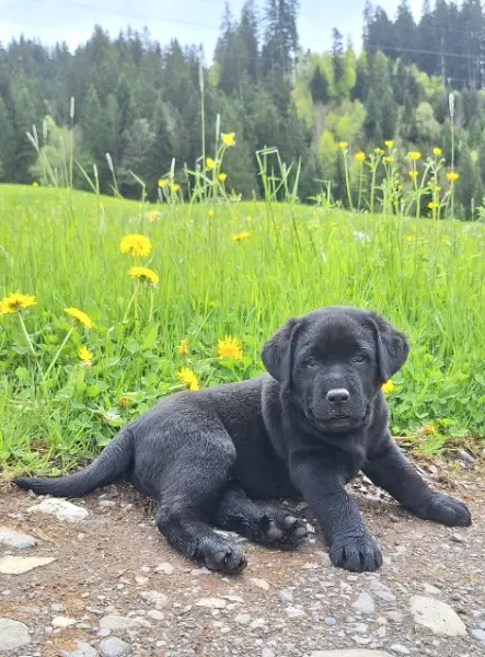 Labradorwelpe mit Abstammungspapieren sucht noch einen geeigneten Platz mit Auslauf und genügend Beschäftigung. Er ist am 14.03.2025 geboren und ist mit sechs Geschwistern aufgewachsen. Die Welpen sind an Alltagsgeräusche gewöhnt und sie sind mehrmals entwurmt, gechippt und geimpft. Bei der Abgabe erhalten sie das gewohnte Welpenfutter mit ins neue Zuhause. Die Elterntiere haben die Röntgenresultate HD A/A und ED 0/0 und sind auf diverse genetische Erkrankungen frei getestet. Falls Sie sich für den schwarzen Rüden Seiro interessieren, melden Sie sich für einen Besuchstermin.