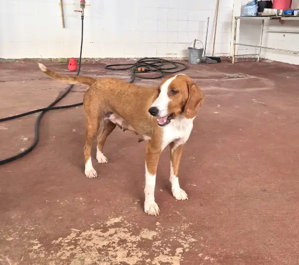 Selma ist eine echte Vorzeigemama. Sie umsorgt und behütet ihre Welpen wirklich liebevoll und aufmerksam. Während dem Fotoshooting von ihren Welpen blieb sie immer wachsam dabei, war aber niemals aufdringlich. Täglich darf Selma aber auch ohne ihre Welpen in den Auslauf und tobt und spielt super gerne mit den andern Hunden. Dort blüht sie richtig auf und zeigt wieviel Lebensfreude in ihr steckt. Ihr Charakter ist eher sanft und zurückhaltend und laute Geräusche oder schnelle Bewegungen verunsichern die schöne Hündin. Für Selma suchen wir daher ein eher ruhiges Zuhause, in dem sie keinem starken Lärm, Trubel oder Stress ausgesetzt ist.