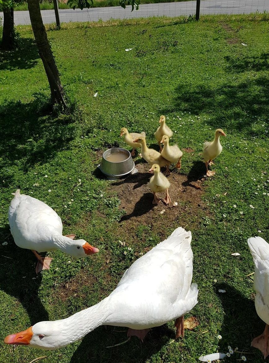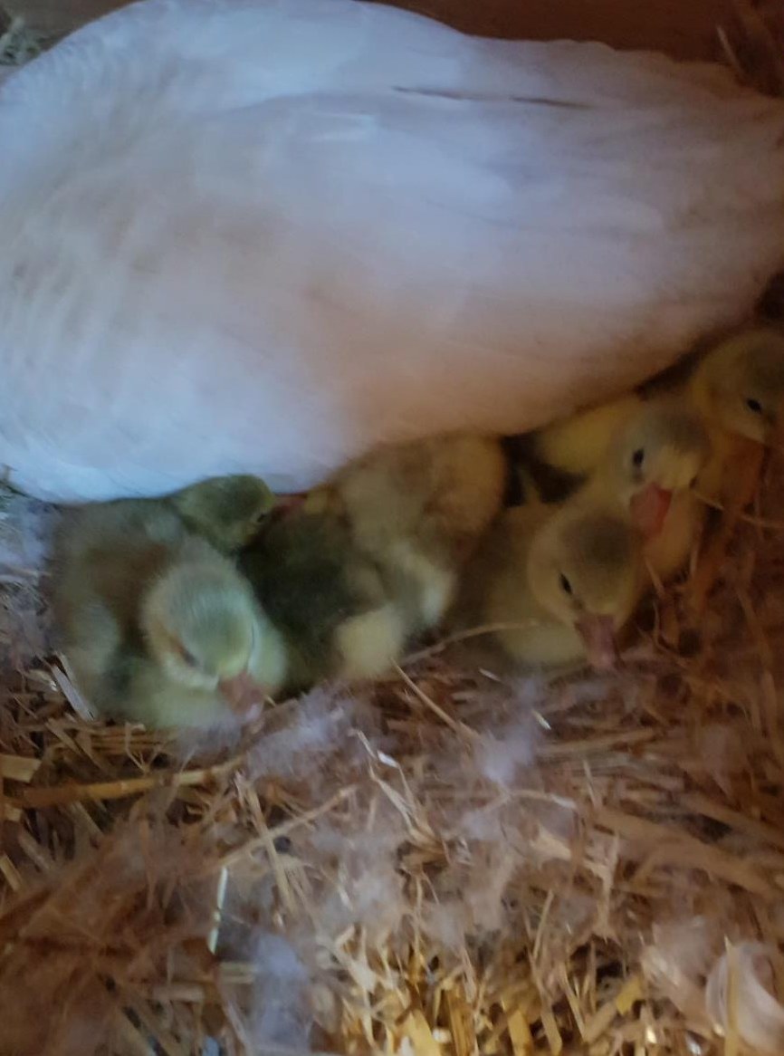 aus Naturbrut, Schlupfdatum 27.4.2025. Das Geschlecht ist noch nicht bestimmbar. Die Gössel können gegen Ende Mai abgegeben werden.