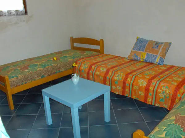 2. Stock:  Küche / Wohnzimmer mit Zugang zur Terrasse (Meerblick) , Schlafzimmer, Dusche / WC, Holzofen Anschluss