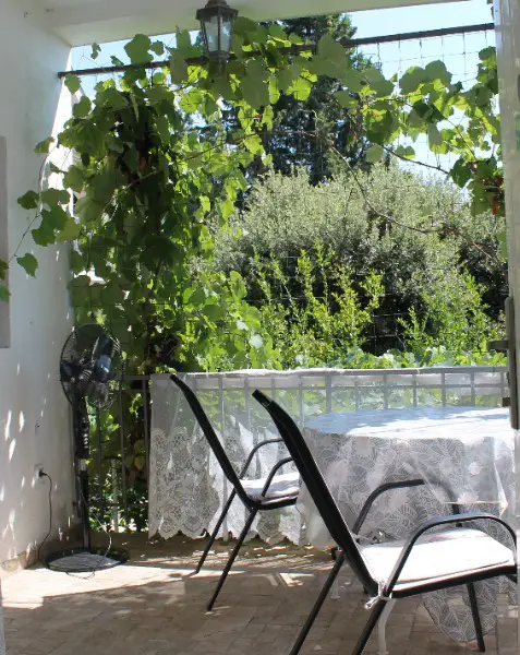 Garten:  Mit Orangen, Feigen, Weintrauben, Grillplatz, Sonnenterrasse und Ruheraum (12 m²)