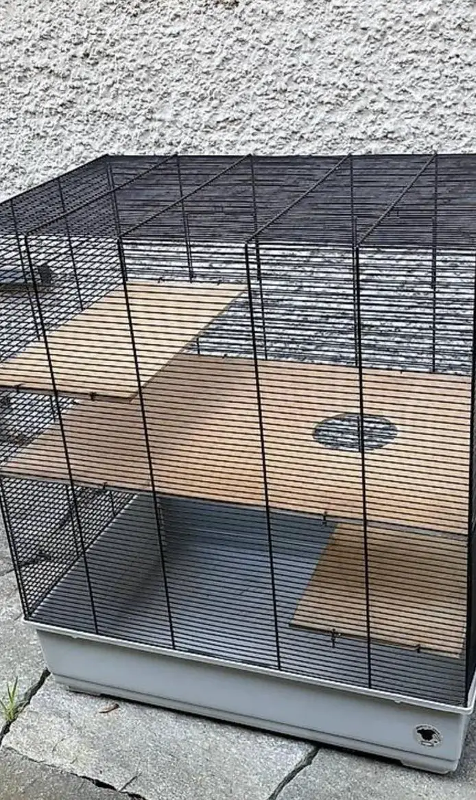 Dieser tierfreundliche Nagerkäfig (HxLxB = 75x65x45cm) ist sehr gut für 3-4 Farbmäuse geeignet. Ich habe den Käfig mehrere Jahre genutzt, entsprechend sind Gebrauchsspuren vorhanden, aber der Nagerkäfig ist absolut funktionsfähig und sofort einsetzbar.