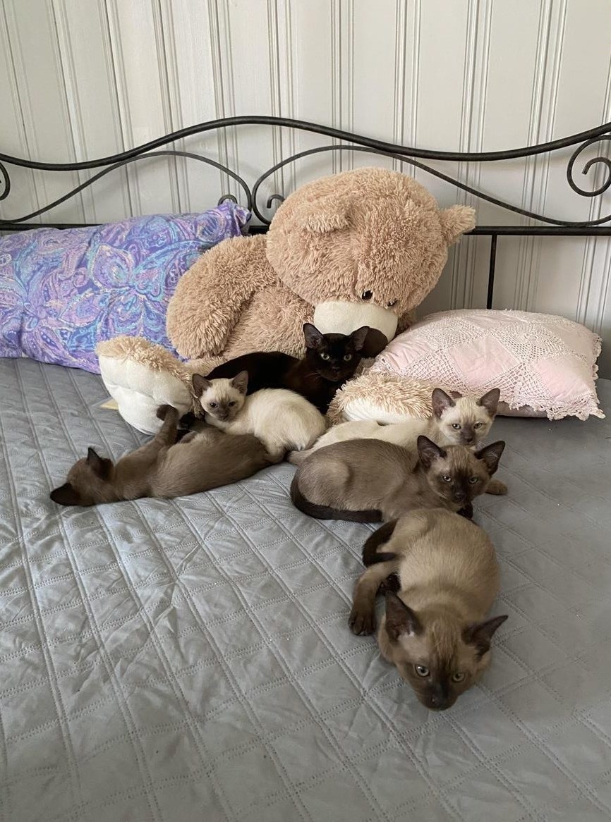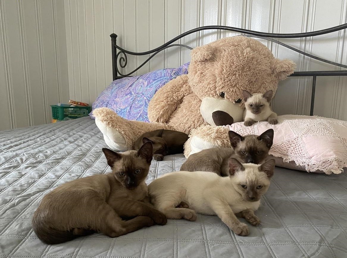 Wir sind drei wunderschöne Tonkanesen Büseli ein helles Weibchen und zwei dunkle Männchen sind am 5. März 2025 geboren und suchen ab sofort ein neues Zuhause.