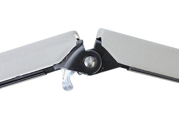Mit Sicherungshebel, damit er im geöffneten Zustand alleine herumgetragen werden kann, ohne dass die
