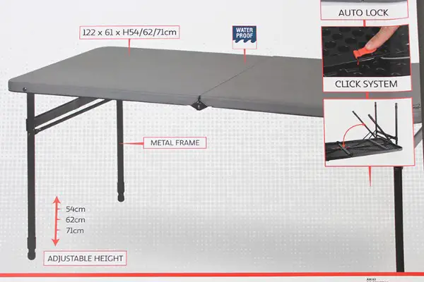 Masse Klapptisch: LxBxH 122 x 61 cm, 3 Höhen