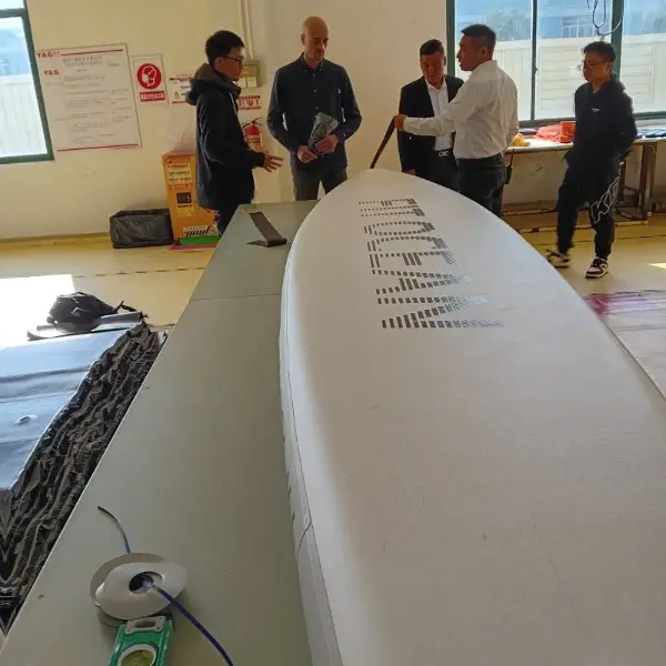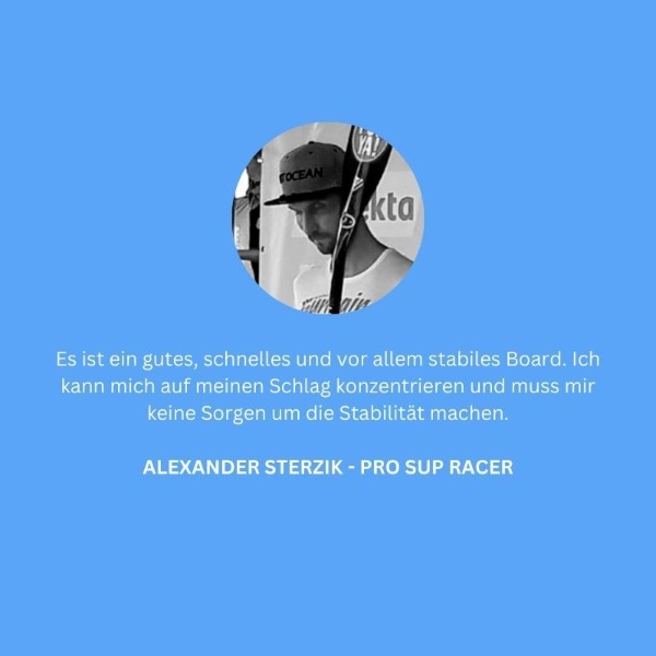 10-12 kmh. Unser Teamfahrer Alexander Stertzik, pro SUP-Racer, hat damit mehrere Rennen in der Schweiz (SUP Tour Schweiz) bestritten und jeweils den 1. Platz in der aufblasbaren Kategorie 14ft erreicht. Circa 20-50 Teilnehmer, die mit Boards der Marken Starboard Airline, Red Paddle Race, Airboard Rocket etc. gingen hier jeweils an den Start. Alexander siegte nicht nur in seiner Klasse, sondern kam einige Male sogar mit der Zeit des zweit oder dritt platzierten Hardboards ins Ziel. Zusammen mit Alexander Stertzik haben wir den Shape weiter verbessert und von normalem Dropstitch auf gewebten Dropstitch umgestellt, wodurch die Boards noch einmal 30% leichter wurden.