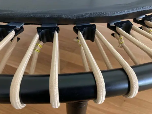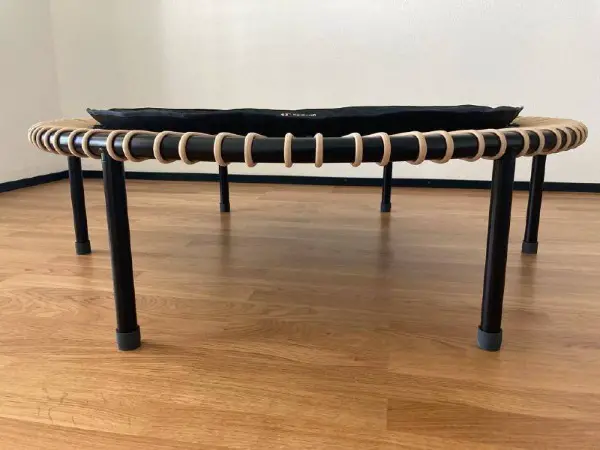 Die Beine lassen sich einklappen, so dass das Trampolin platzsparend verstaut werden kann.