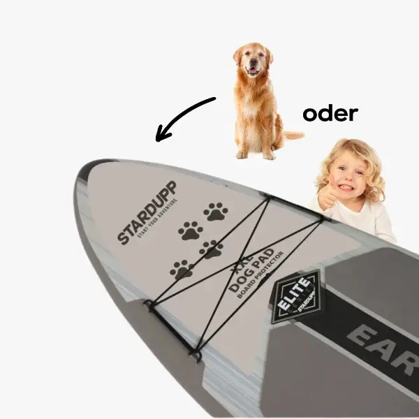 Mit dem Dogpad von Stardupp können Sie und Ihr pelziger Freund gemeinsam Abenteuer erleben. Der Stardupp Earth Elite SUP bietet ausreichend Platz für ein Dog Pad. Ihr bester Freund kann Sie bei jedem Abenteuer begleiten, während Ihr SUP vor Kratzern geschützt bleibt.
