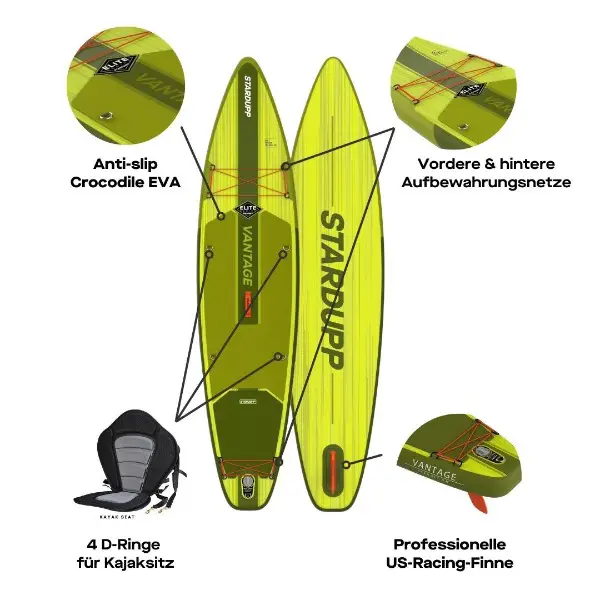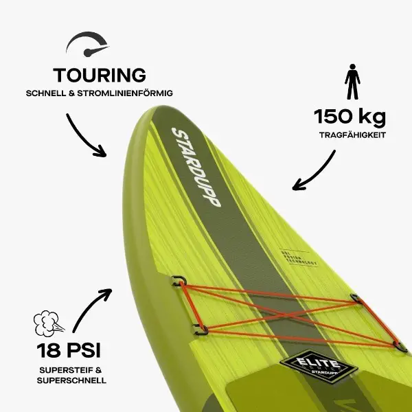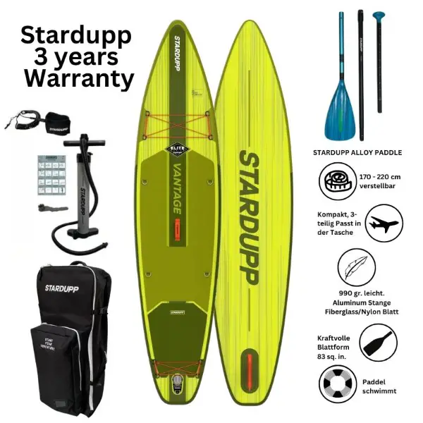 Der neue Stardupp Vantage Elite Touring ist Teil der neuen Elite-Serie. Die Elite Boards sind die stärksten und steifsten Boards, die Stardupp bis heute produziert hat. Durch die maschinelle Laminierung wird der menschliche Faktor ausgeschaltet und ein gleichbleibend hohes Mass an Haltbarkeit, Festigkeit und ein hervorragendes kosmetisches Finish erzielt.