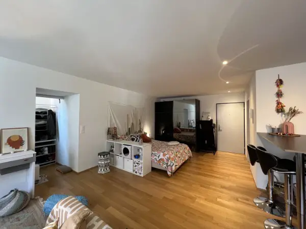 Diese 1,5-Zimmer-Wohnung besticht durch einen sehr funktionalen und vielseitig nutzbaren, grossen, offenen Raum. Sie liegt direkt an der Niederdorfstrasse und nur wenige Minuten vom Hauptbahnhof entfernt. Sie befindet sich im zweiten Stock auf der Rückseite des Gebäudes, abseits vom Trubel des Niederdorfs. Die Wohnung ist sehr ruhig.