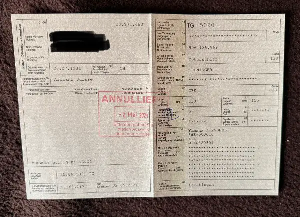 Zulassung / Abmeldung: Bootsausweis TG5090, gültig bis 2024, abgemeldet am 02.05.2024