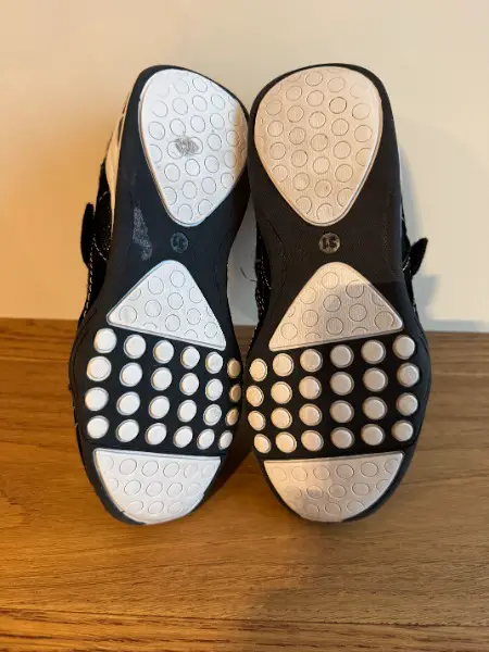 mit den weissen Sternen auf der Innensohle hat sich gelöst, kann aber ohne weiteres angeklebt werden.