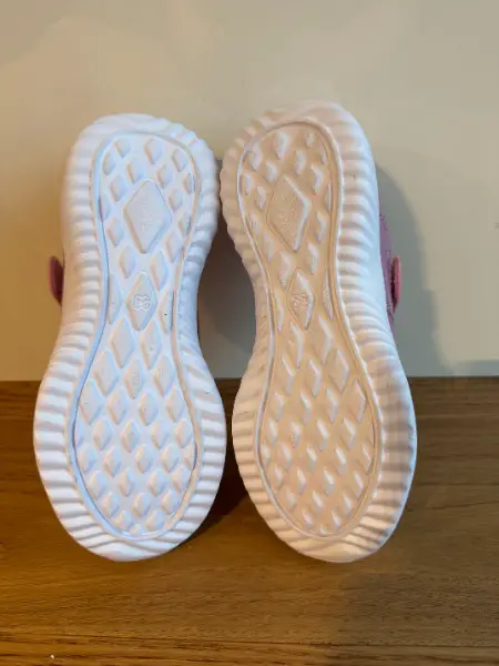 Schmucke, neue rosa Turnschuhe mit Klettverschluss und weisser Sohle sowie mit glitzernden Schubhändeln