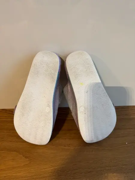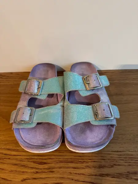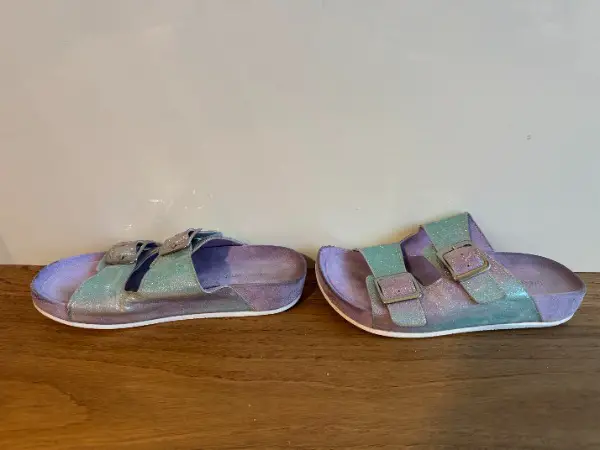 Türkis-violette Pantoletten / Finken / Hausschuhe, Gr. 33