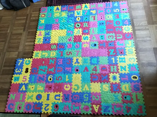 Gut erhaltene Moosgummi-Platten mit Zahlen und Buchstaben.