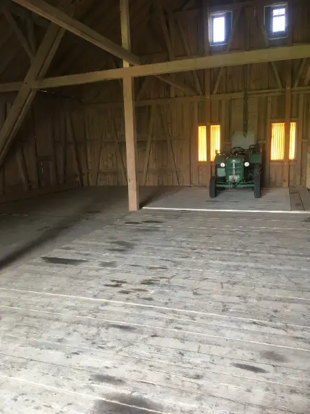 in geschlossener Scheune.