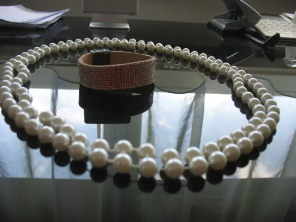 Perlenkette und GUESS Glitzerarmband Modeschmuck
