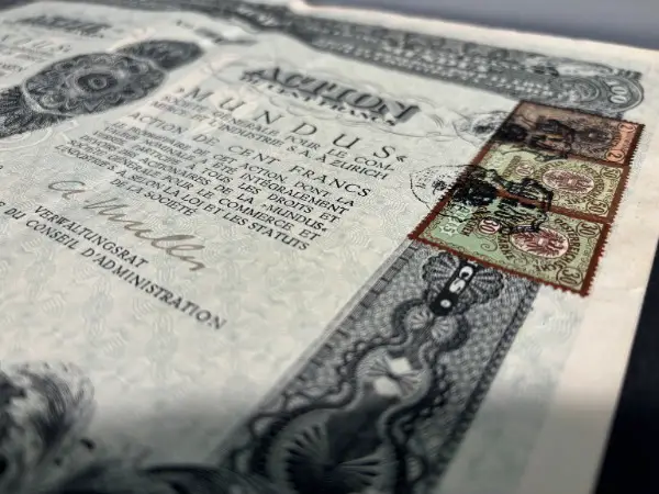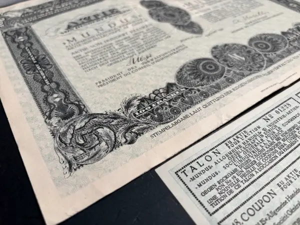 Banknoten Wertanlage Tresor Finanzen etc. // Grösse Aktie ca.: L 340mm x 250mm // Versand gefaltet im A4 Covert, auf Wunsch und Aufpreis in grösserem Kartonumschlag