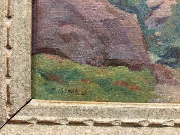 Leinwand SCHLUCHT GELÄNDE BERG von vermutlich 1921 (signiert und datiert mit 21 -> 1921) mit sehr schönen dezenten Farben und zeitgenössischer Ausführung vom bekannten schweizer Künstler MAX EUGENE BRACK aus