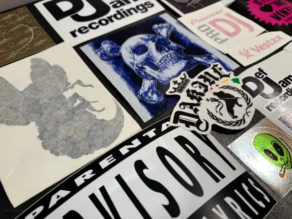 Studio Musikkeller aus hochwertigem massivem Vinyl - PVC // mit Sujets wie Alien Totenkopf Burton Dakine Tags Grafiti für