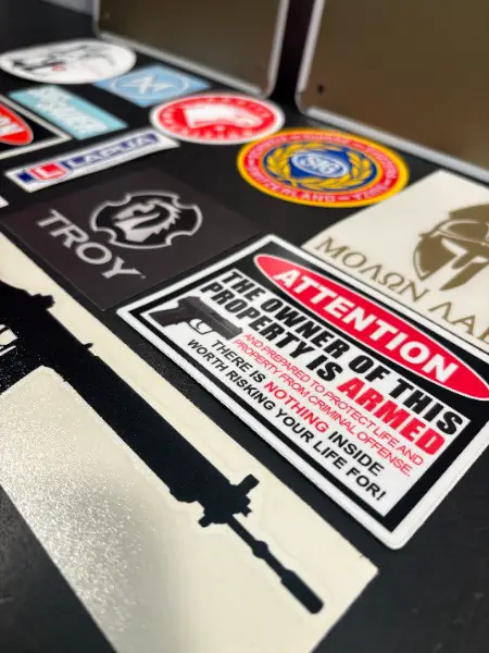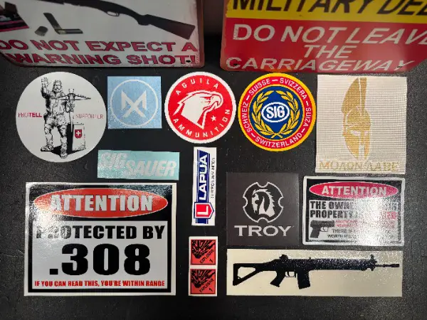 SET mit überwiegend Aufkleber aus den USA - Amerika für Sammler von Waffen Munition Tactical Gear Zielfernrohr etc. neuer hochwertiger Sticker von SIGSAUER Waffenmanufaktur LAPUA AQUILA Ammunition TROY EXPLOSIVE PROTELL XXL-Sticker ATTENTION 308. Winchester Munition Waffenbesitzter etc. // Aufkleber in einer TOP hochfesten Qualität aus wetterbeständigen Vinyl - PVC // sowie 2x Blechschilder mit Grösse ca. 20cm x 30cm - A4 mit Sujet Gewehr ShotGun Flinte PumpAction und ein Armee Warnschild Sperrgebiet ...: -)