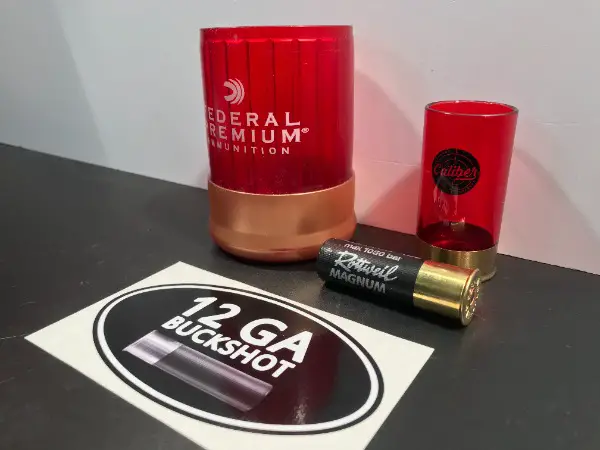 Schrotpatrone vom MARKEN-Hersteller CALIBER - USA - Amerika // oben aus solidem
