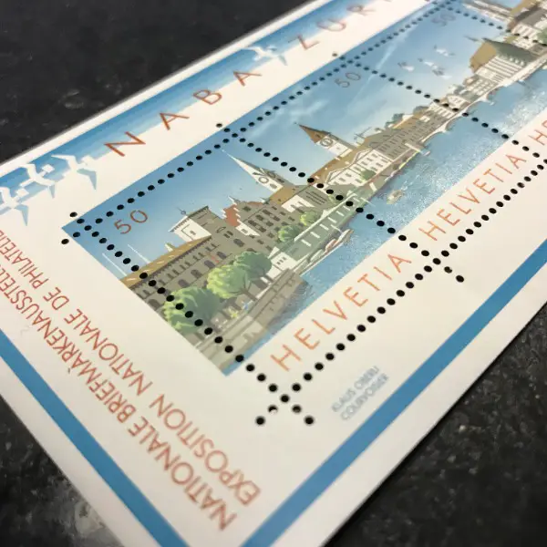 SONDERMARKE - zur NATIONALEN BRIEFMARKENAUSTELLUNG 1984 der schweizerischen POST PTT mit Sujet Zürich von der Quaibrücke zur Limmat mit Kirche St. Peter und Münster etc. // für Sammler von Sondermarken Philatelie Briefmarken Markenbogen Sonderdruck Zeitzeugen Sonderbrief historischen Dokumente