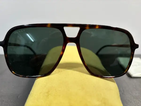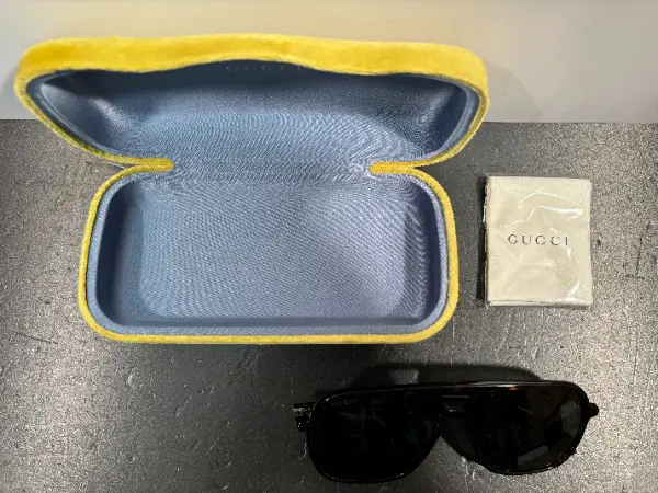 Putztuch // ModellNr.: GG0545S 002 mit UV-Schutz 400 im Fliegerstyle - Pilotendesing, Linsenbreite 58mm, Brückengrösse 15mm, Schläfenlänge 145mm// aus Platzgründen und Nichtgebrauch günstig abzugeben // NEUPREIS ware um die 210.- 220.- // Farbe Gläser Havanna grün, Rahmen braun // aus gepflegtem NICHTRAUCHERHAUSHALT // für Herren & Damen mit Stil und Geschmack und Fans exklusiver eleganter Acessoires - Kleidung in einer ausserordentlichen Qualität und faible für Luxus Fashion // SET - KEIN Einzelverkauf!