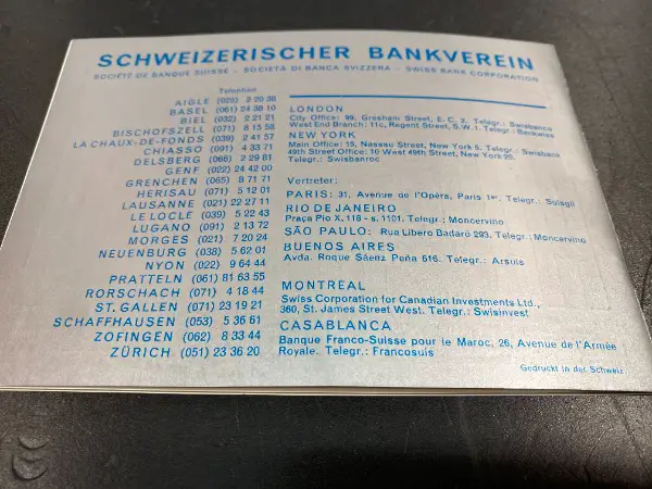 BANK OF SWITZERLAND - UNION DE BANQUES SUISSES - UNIONE DI BANCHE SVIZZERE aus Zürich Paradeplatz Bahnhofstrasse Schweiz sowie Quittung Beleg // für Sammler von Bank Aktie Handel Postkarten Geld Zeitzeugen Briefmarken Ansichtskarten Briefmarken antike Dokumente Münzen