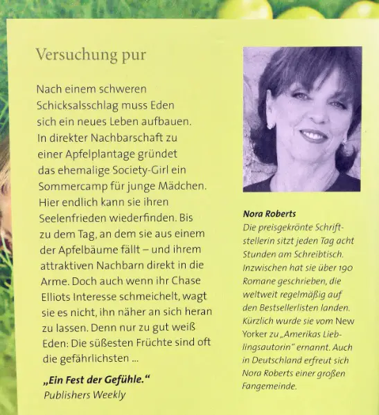 Autorentext Nora Roberts wurde 1950 in Maryland geboren. Ihren ersten Roman veröffentlichte sie 1981. Inzwischen zählt sie zu den meistgelesenen Autorinnen der Welt: Ihre Bücher haben eine weltweite Gesamtauflage von über 500 Millionen Exemplaren. Auch in Deutschland erobern ihre Bücher und Hörbücher regelmässig die Bestsellerlisten. Nora Roberts hat zwei erwachsene Söhne und lebt mit ihrem Ehemann in Maryland.