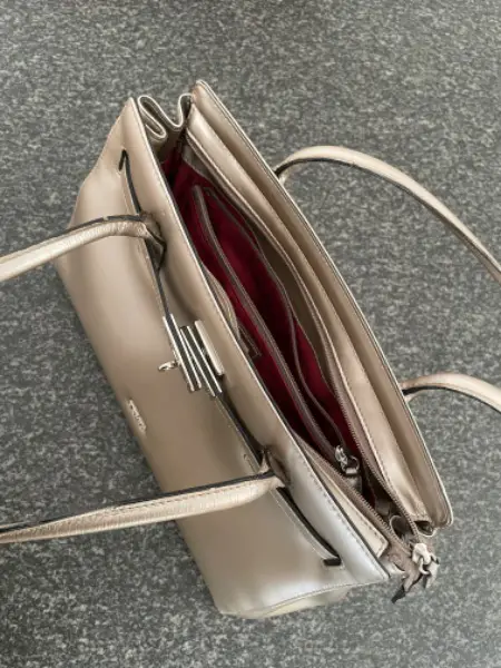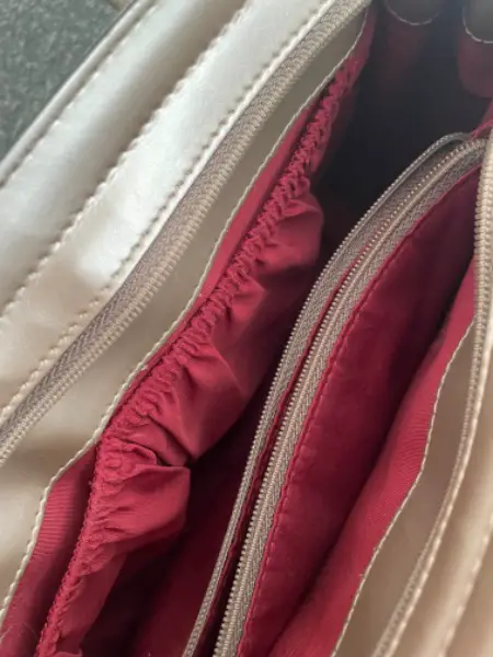 . Futteral in Bordeaux. Mehrere Innentaschen / Abteilungen sowie 1 Aussentasche mit
