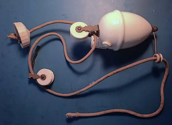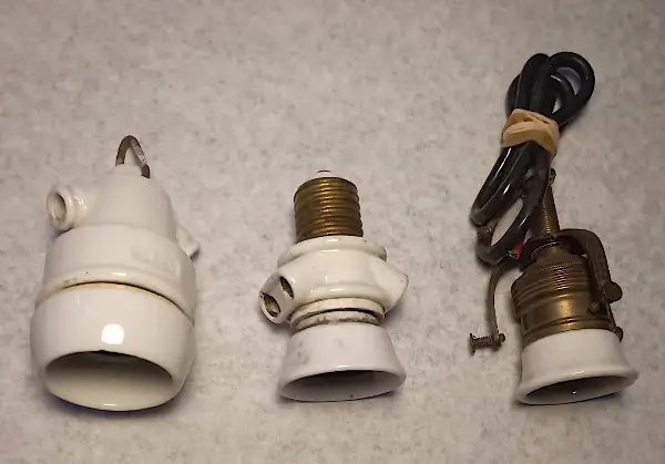 3 Stück antike Lampenfassungen aus Porzelan, Metall