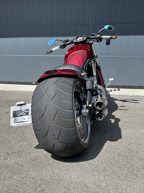 Kompletter Heckumbau mit Fender, Spezialschwinge und Luftfederungssystem. Breitreifen, Bremszangen PM, gelochte Bremsscheiben vorne und hinten von Rick's, Leichtmetallräder von Rick's, Auspuffanlage NLC in Schwarz, Lenker Rizoma mit Spezial Sportspiegeln. Kellermann Blinker vorne und hinten. Spezialfussraster für Fahrer und Beifahrer. Seitlicher Nummerschildhalter für Wechselnummer.