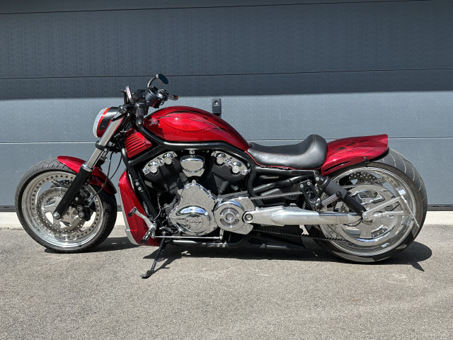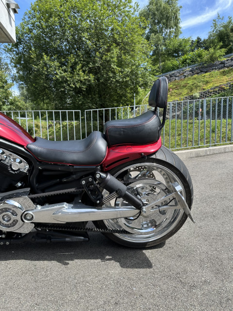Die auffällige und einmalige Lackierung des Bikes fällt auf und ist auch nach Jahren noch ein absoluter Hingucker! Das Bike wurde komplett demontiert und alle Parts in schwarz und rot gespritzt. Sattel mit Spezialpolster vom Spezialisten mit passendem, bequemen Soziussattel, beides ebenfalls in schwarz/rot.