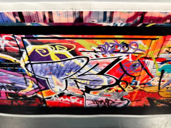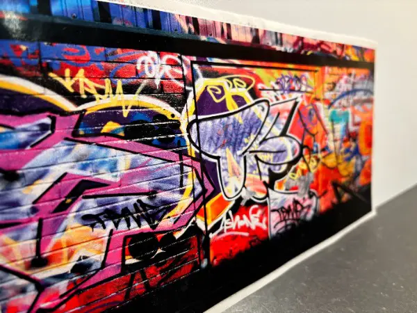 TRÄGERPAPIER und NICHT BESTANDTEIL DES AUFKLEBERS! // mit Sujet Tags Grafiti auf einer Bachsteinwand für auf das PlattenCase Koffer Collage