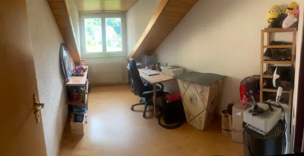 Diese Dachwohnung ist ab Oktober oder früher verfügbar und eignet sich perfekt für alle, die das ruhige Landleben schätzen, ohne auf Komfort verzichten zu müssen.