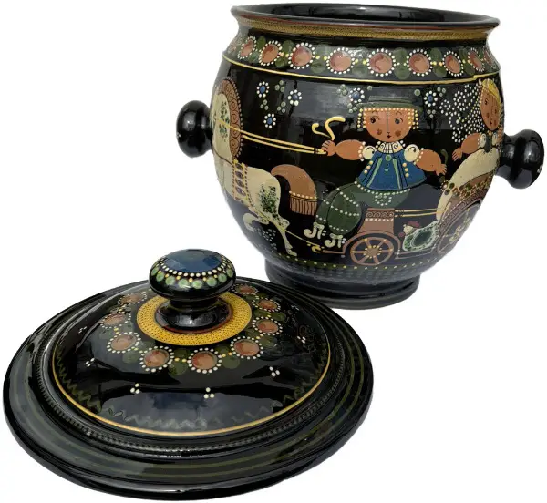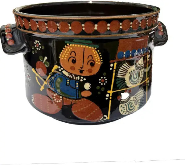 Topf mit Deckel aus handbemaltem Steinzeug 5,5 Liter ideal für die Aufbewahrung und Reifung von zBsp Rum, anderen Spirituosen oder Sauerkraut