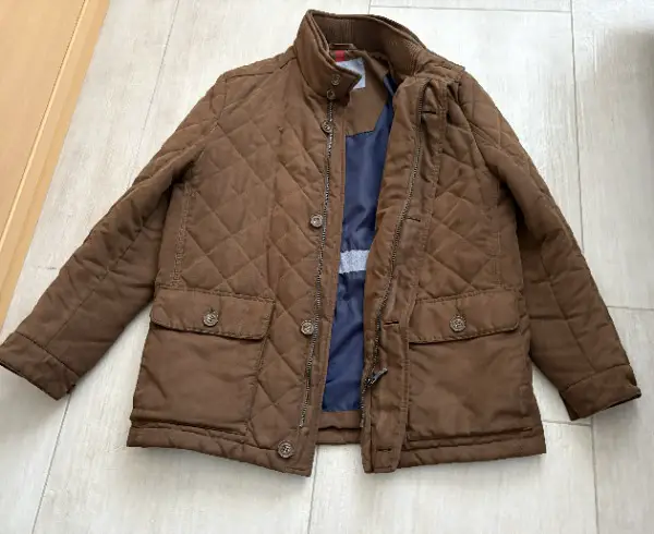 Jacke ist gebraucht, aber in gutem Zustand. Ideal für die kalte Jahreszeit. Das Aussenmaterial ist aus Polyester. Sie ist leicht und trotzdem warm. Der