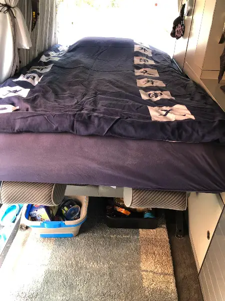 - Liegefläche Bett (Innensitze nach-vorn Umklappprinzip) : 120x200 (für 1-2 Personen) , «Tempur»-Matratze und Bett-Auflage