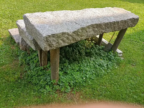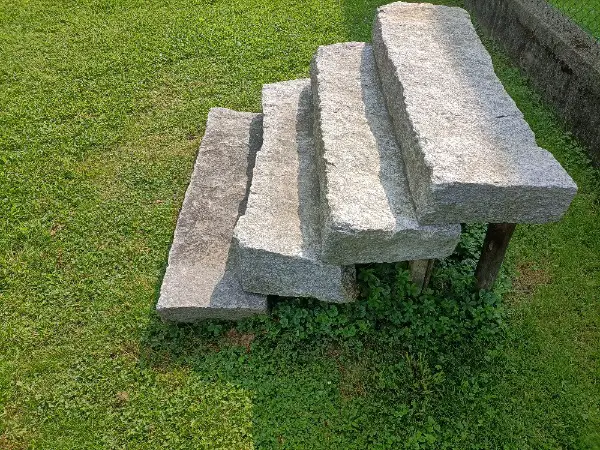 Weitere Blocktritte sind aus Grünem Andeer Gneis vorhanden.