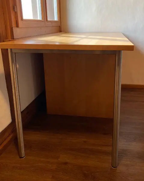 Tischplatte hat ein paar Kratzer, ist aber tiptop. Der Tisch muss abgeholt werden in Bachs oder wird für 50.- Transportentgeld zum Kunden geliefert.