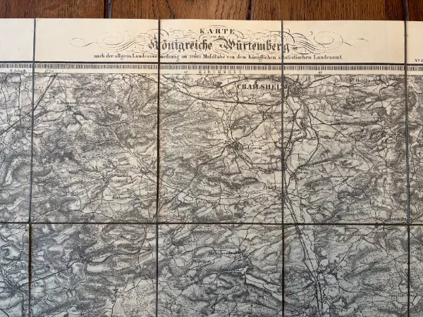 >rarität: antike xl karte königreich würtemberg 1838 ellwan