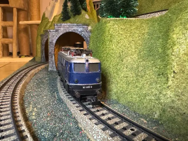 Plastik. Robuster Scheibenkollektotmotor. Daher schwere Ausführung. Die Lok wurde bespielt und hat entsprechende optische Spuren. Sie funktioniert inkl. Licht einwandfrei. Verkauf wegen Reduktion des Rollmaterials. Ich habe auch noch weitere, gepflegte Loks analog und digital.