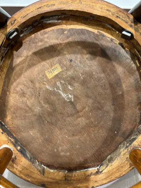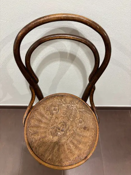 hochwertiger ORIGINAL WIENER KAFFEEHAUS STUHL aus massivem Holz und Ornament auf der Sitzfläche // Ornamente und Medusa Figur Frau mit sehr starker Prägung Relief Struktur // von der bekannten Manufaktur JACOB & JOSEF KOHN - WIEN - ÖSTERREICH - WIEN mit eingebranntem Stempel auf der Unterseite und von ca. 1860 - 1880 // für den Liebhaber und Sammler von ARTDEKO Jugendstil BÜRO Antiquitäten Rustico ENTRE Wohnzimmer GARDEROBE Flohmarkt Brokenhaus Vitrine SideBoard ShabbyChic Fernsehzimmer etc. oder Sammler von Designermöbel ArtDeco Vintage Antiquität Jugendstill Jahrhundertwende Bauhaus // tolle wie einmalige Dekoration // dem Alter entsprechend mit leichten Gebrauchsspuren aber sehr schöner Patina, Zustand gut aber Gebrauchsspuren; ggf Auffrischung notwendig // Grösse über alles ca. H 87cm x B 47cm, Durchmesser Sitzfläche ca.: 36cm, Höhe der Sitzhöhe ca.: 47cm, Stellfläche an den Füssen ca.: T 41cm x B 31cm