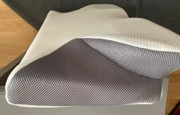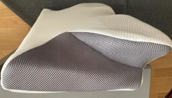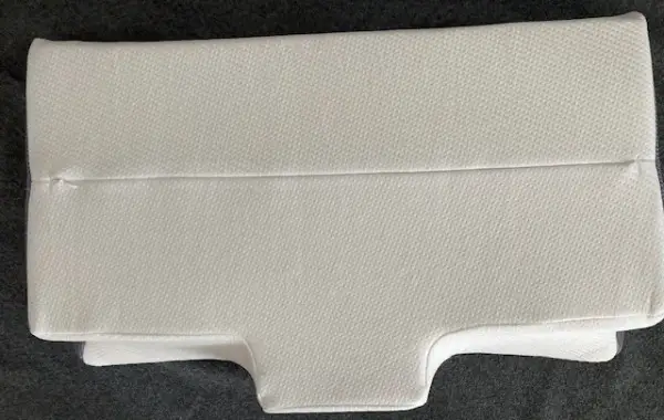 Reissverschluss auf der Rückseite, Überzug kann gewaschen werden. Bei der Firma Endorma gibt es passende Überzüge. Die Einbuchtung (dunkel) auf beiden Seiten sind für die Arme gedacht!