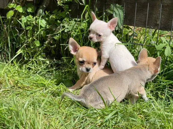 Chihuahua... Sono 2 maschi e 4 femmine... Sono estremamente affettuosi e coccolosi. Sono molto giocherelloni ma non appiccicosi. Sono abituati ai bambini, ai rumori domestici, ecc. Sono vaccinati, identificati, sverminati, iscritti al, con certificato di buona salute, certificato ICAD, impegno firmato e un corredo completo. La loro tipizzazione è notevole: zampe corte, stop marcato. I genitori provengono da genitori iscritti al LOF.