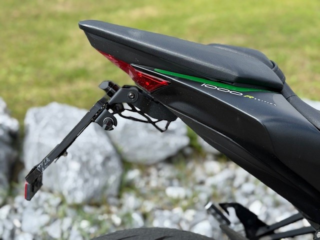 Zubehör: Kurzheck mit Miniblinker, IXIL Sportauspuff "underfloor", Soziusfussrastenverlängerung, Lenkerspiegel.