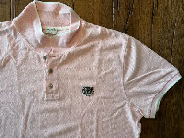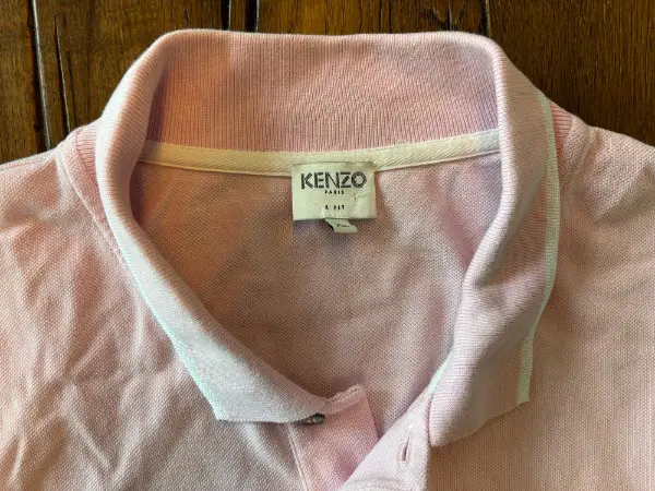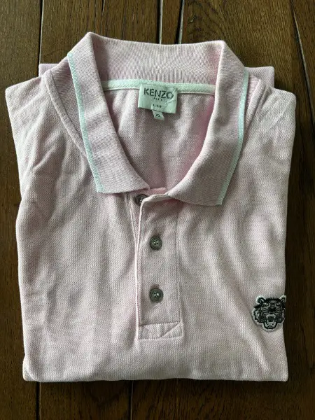 NEUES UNGETRAGENES hochwertiges wie edles POLOSHIRT TIGER von KENZO - Paris - France - Frankreich mit noch ORIGINAL Kunststoffbändel der Etikette am Kragen // Grösse XL für Herren und Damen // Im Schrank gelagert und NIE GETRAGEN und beim Umzug wieder entdeckt; zwischnezeitlich mir aber zu gross // ZWEI MINIME FLECKEN an der Rückseite (siehe Kennzeichnung mit dem Stift) , werden vermutlich aber beim waschen verschwinden // ist ungewaschen - ungebügelt // NEUPREIS war um die 190.- // Farbe ist ein pink - zartes rosa mit weisen Streifen am Kragen und Ärmelsaum; leider auf den Fotos nicht so gut zu erkennen // aus gepflegtem NICHTRAUCHERHAUSHALT an der zürcher Goldküste // für Herren und Damen mit Stil und Geschmack und Fans exklusiver eleganter Kleidung in einer ausserordentlichen Qualität und faible für Luxus Fashion
