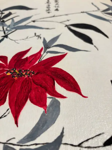 Ein tolles wie edles lebhaftes handgemaltes Bild Sujet CHINA mit Schriftzug und Blumen // auf sehr dickem